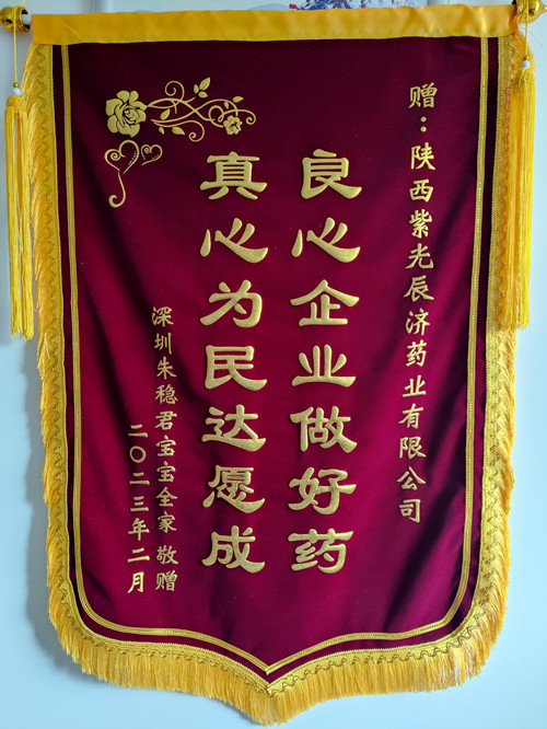 2023年元宵節(jié)剛過,正在忙碌上班的汪總工再次接到了陳女士的信息:汪部長,很不好意思,寶寶滿月那天就想做面錦旗送給你們,以表達我們的感恩之情,但因后來一段時間深圳疫情嚴(yán)重,我們一家全陽了,忙于治療和修養(yǎng),時間耽誤了。剛一過年我們就制作了錦旗,今天快遞已送到貴公司門衛(wèi)處,請查收。 打開包裝精美的長條型方盒,展開兩面燙著金字的旌旗,一方系贈陜西紫光辰濟藥業(yè)有限公司:“良心企業(yè)做好藥,真心為民達愿成”;另一方贈技術(shù)總工汪君平:“嚴(yán)謹(jǐn)認(rèn)真對工作,細致負(fù)責(zé)對客戶”。醫(yī)者仁心,看著金光閃耀的錦旗,汪總工眼眶有些潤濕了。金杯銀杯不及老百姓的口碑,這錦旗不僅是對培坤丸療效的肯定,更是對紫光辰濟這個百年老字號藥企的認(rèn)同和贊譽??! 盡小者大,慎微者著,百年來紫光辰濟人腳踏實地,守牢質(zhì)量底線,用工匠精神堅持做好藥,為人民,以療效確切的產(chǎn)品贏得了消費者的良好口碑;未來發(fā)展之路上,紫光辰濟將繼續(xù)做好藥品生產(chǎn),充分發(fā)揮中醫(yī)藥的獨特優(yōu)勢與作用,守正創(chuàng)新,不斷進取,為人民健康提供堅實的保障。