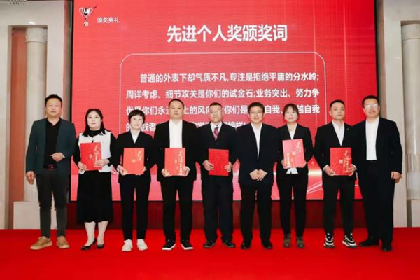 在聽取完各部門工作述職后,公司總經(jīng)理馮建利代表公司全面總結(jié)了2023年的工作情況,回顧了公司在過去一年中取得的成績(jī)和面臨的挑戰(zhàn)。他在講話中說道:“公司的發(fā)展離不開每一位員工的辛勤付出和努力,2023年對(duì)紫光辰濟(jì)來說是極為不平凡的一年,面對(duì)復(fù)雜多變的改革形勢(shì),全體辰濟(jì)人逆勢(shì)前行,勇毅奮斗,在變化中逐風(fēng)搏浪,在風(fēng)雨中砥礪前行,交出了一份飽含智慧與汗水的靚麗答卷?!痹诎才挪渴?024年工作計(jì)劃時(shí),公司總經(jīng)理馮建利強(qiáng)調(diào):美好未來,奮斗以成。展望2024年,新的時(shí)代已經(jīng)向我們開啟,無(wú)限的可能均在無(wú)畏的奮斗中出現(xiàn)。號(hào)召公司全體干部職工要咬定2024年工作要點(diǎn)的目標(biāo),堅(jiān)持穩(wěn)中求進(jìn)保存量,先立后破促增量的經(jīng)營(yíng)方針,以生產(chǎn)經(jīng)營(yíng)為中心,以新線建設(shè)為重心,以制度建設(shè)為抓手,持續(xù)深化內(nèi)部改革,強(qiáng)化基礎(chǔ)管理,合理配置資源,不斷提升技術(shù)創(chuàng)新水平、本質(zhì)安全水平和運(yùn)營(yíng)管理水平,為紫光辰濟(jì)藥業(yè)持續(xù)、健康、高質(zhì)量發(fā)展奠定堅(jiān)實(shí)基礎(chǔ)。 在表彰環(huán)節(jié),公司對(duì)在2023年度工作中表現(xiàn)突出的個(gè)人和集體進(jìn)行了表彰嘉獎(jiǎng),向榮獲高級(jí)職稱的三位管理干部頒發(fā)了企業(yè)聘書。獲得表彰的先進(jìn)代表和受聘代表分別作了表態(tài)發(fā)言,整個(gè)頒獎(jiǎng)環(huán)節(jié)將大會(huì)現(xiàn)場(chǎng)氣氛推向高潮。